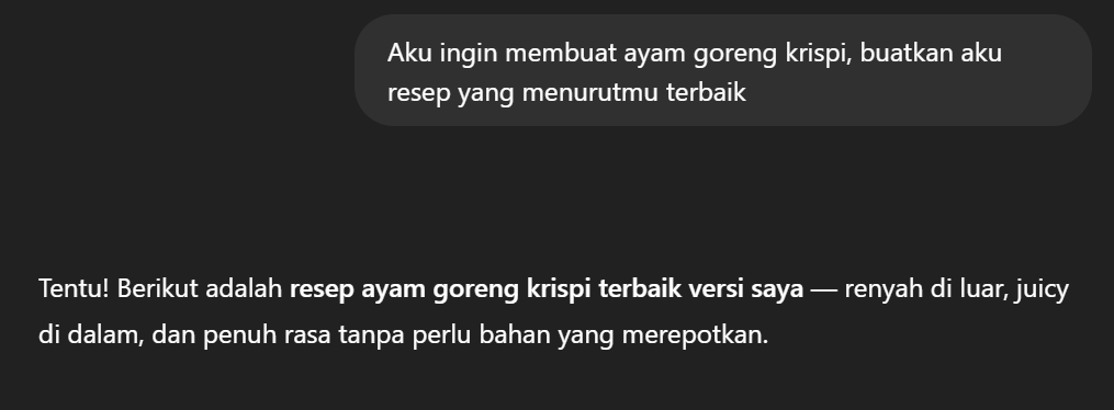 Sedang mencari inspirasi untuk membuat ayam krispi yang renyah di luar dan juicy di dalam? Di sini, saya membagikan hasil obrolan saya dengan ChatGPT tentang resep ayam krispi terbaik. Mulai dari teknik marinasi, pilihan bumbu, hingga cara menggoreng yang pas, semua dibahas secara santai namun detail. Siapa tahu, resep dari AI ini justru jadi favorit barumu di dapur!