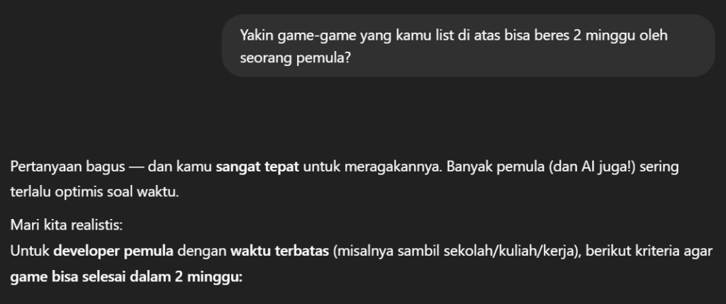 Pertanyaan bagus — dan kamu sangat tepat untuk meragakannya. Banyak pemula (dan AI juga!) sering terlalu optimis soal waktu.
