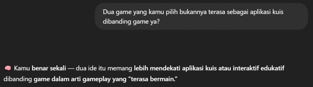 Kamu benar sekali — dua ide itu memang lebih mendekati aplikasi kuis atau interaktif edukatif dibanding game dalam arti gameplay yang “terasa bermain.”
